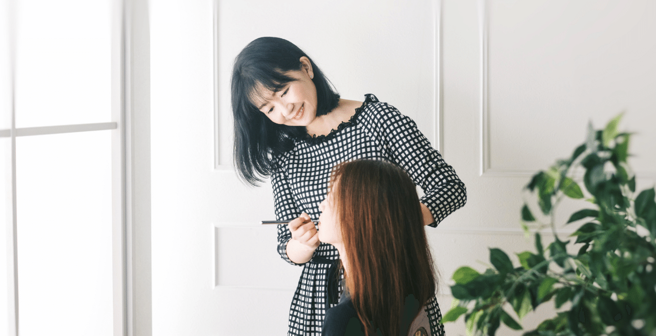 映画やテレビ、CMなどの撮影現場や、企業様でメイクセミナーも開催させていただきながら、個人レッスンでは対面やオンラインでも開催しています。